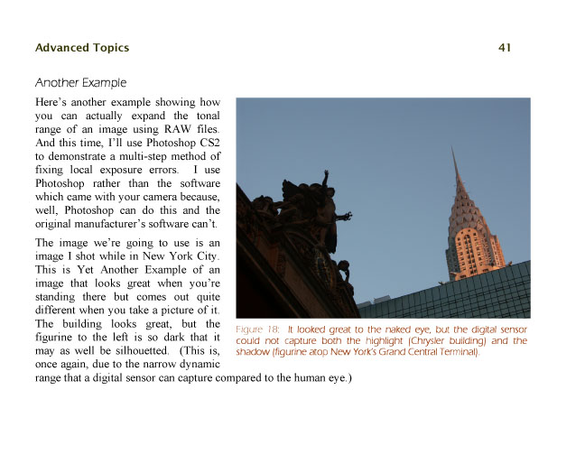 Here are some sample pages from the Advanced Topics e-booklet, targeted at readers of the Minolta and Sony e-books. You can download your own copy right now for only USD $9.95 by clicking here.