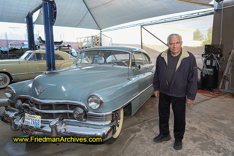 Cadillac and its Owner Cadillac and its Owner An owner standing next to his recently restored classic Cadillac. (C) Gary L. Friedman. This image is available for licensing. Contact info@FriedmanArchives.com