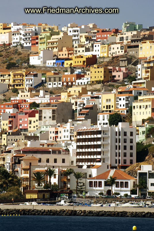 A colorful and picturesque mountain-side village on La Gomera Island. This is definitely worthy of a travel brochure. :-) See also here.