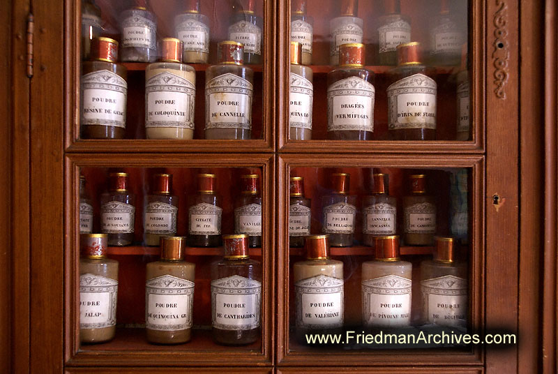 Built in 1443, the Hospices de Beaune was at the forefront of compassionate care for the terminally ill. This is a close-up of some of the medicines in the chemical rack.
