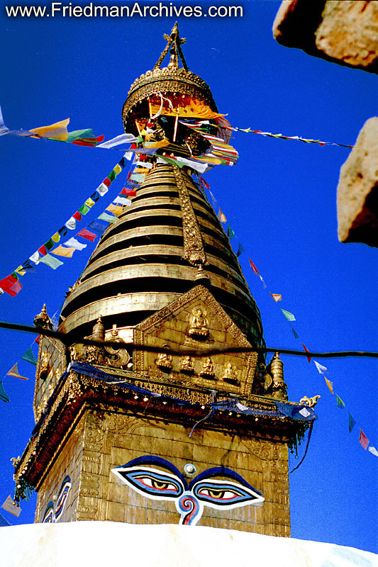 This is probably the most famous image in all of Nepal. It can be found at the top of the "Monkey Temple" in Kathmandu.