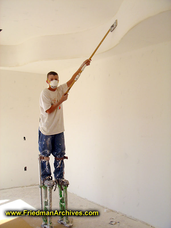 An under-age construction worker puts the finishing touches on the walls of this new home.