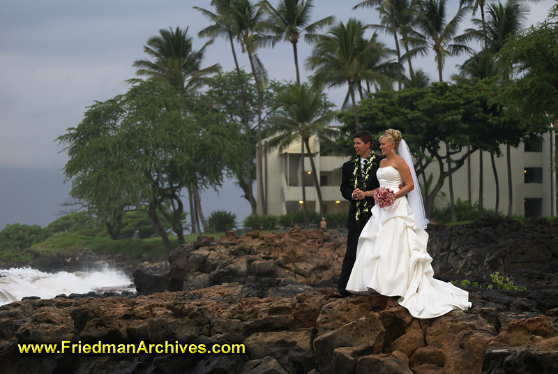 A classic pose - a bride and groom near the ocean, facing the future together. How romantic!