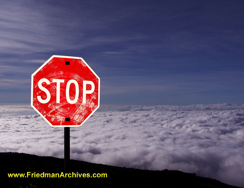 Heavenly Stop Sign Heavenly Stop Sign A Stop sign at the top of the world. Kind of conveys a meditative experience: “Stop and contemplate your existence!”.“(C) Gary L. Friedman. This image is available for licensing. Contact info@FriedmanArchives.com“