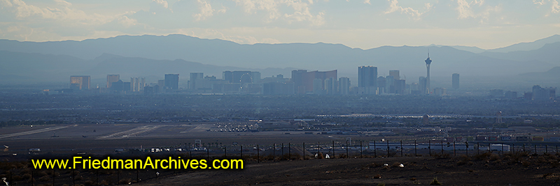 Las Vegas Skyline in smog 7R300097 Las Vegas in Smog “(C) Gary L. Friedman. This image is available for licensing. Contact info@FriedmanArchives.com“