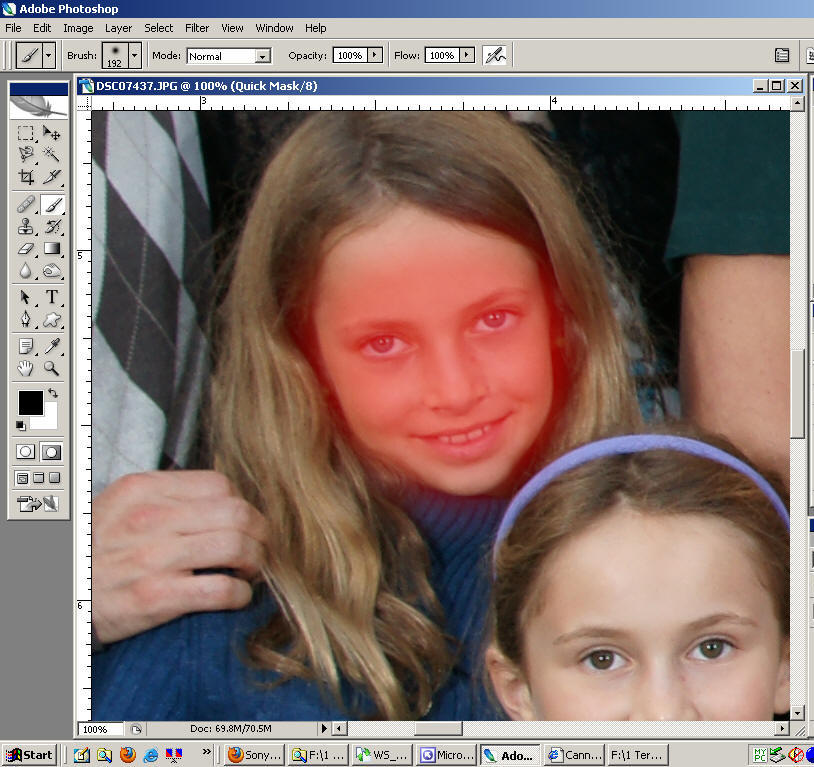 Paste the new face onto the old one. If the head hasn't moved much, this will become a very easy face transplant. I did this with the two girls and the results are below:
