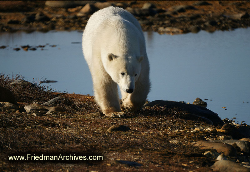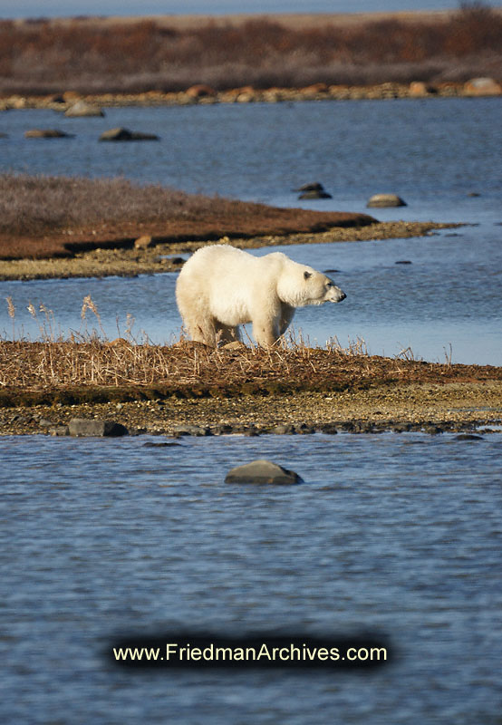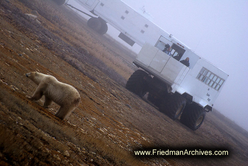 In Manitoba’s Churchill region, global warming is taking its toll on the Polar Bear population. Winter is coming late and ending early, and so the season for hunting ring seals on the ice is dramatically shortened. A year ago at this time the tundra would have been white with ice and snow; but in 2007 the landscape was brown instead of snow white. These images can be useful as editorial shots for global warming articles.